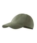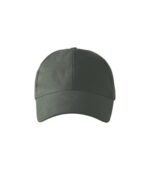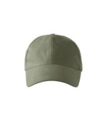 šesťpanelový strih, vystužené 2 predné panely, prešívaný, zľahka prehnutý šilt, obšité vetracie otvory, potiaca páska, veľkosť nastaviteľná mosadzným cvokom