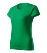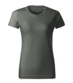 bez etikety – pripravené na rebranding, zľahka vypasovaný strih s bočnými švami, úzky lem priekrčníka z rebrového úpletu 1:1 s 5 % elastanu, neutrálny veľkostný štítok v bočnej časti priekrčníku, vnútorná časť priekrčníka začistená páskou z povrchového materiálu, spevnenie ramenných švov páskou, silikónová úprava