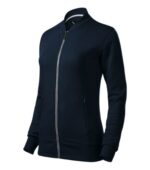 strih tvarovaný bočnými dielmi, celozapínací kovový zips, tiahlo zipsu s gravírovaným logom, golier v štýle “bomber” z rebrového úpletu 2:2 s 5 % elastanu, vnútorná časť priekrčníka začistená páskou, vrecká v členiacich švoch klokanky na prednom diele, dolný lem a manžety rukávov z rebrového úpletu 2:2 s 5 % elastanu, vnútorná strana nepočesaná