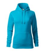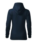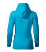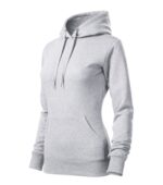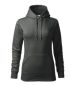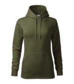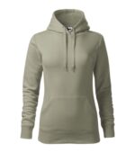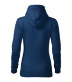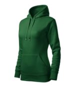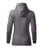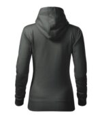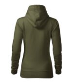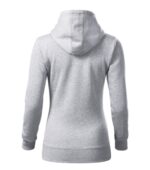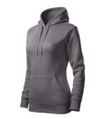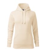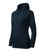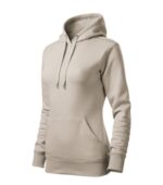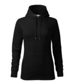 zľahka vypasovaný strih s bočnými švami, kapucňa s podšívkou, na stiahnutie šnúrkou, vnútorná časť priekrčníka začistená páskou vo farbe povrchového materiálu, nakladané vrecko v štýle klokanky, dolný lem a manžety rukávov z rebrového úpletu 2:2 s 5 % elastanu, vnútorná strana počesaná