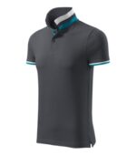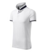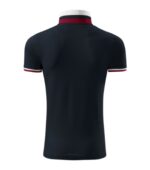 strih s bočnými švami, golierik a lemy rukávov z rebrového úpletu 1:1, spodná časť golierika a lemy rukávov s kontrastnými pruhmi, léga s 2 gombíčkami vo farbe materiálu, rozparky v bočných švoch a spodná léga s kontrastnou páskou, vnútorná časť priekrčníka začistená kontrastnou páskou, spevnenie ramenných švov páskou
