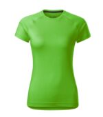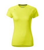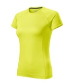 hladký strečový rýchloschnúci materiál, ideálne pre šport a pohybové aktivity, priliehavý strih tvarovaný bočnými švami, dekoratívne prešité ploché švy, úzky lem priekrčníka z povrchového materiálu, vnútorná časť priekrčníka začistená kontrastnou páskou, krátke raglánové rukávy, tvarovaný a mierne predĺžený zadný diel, etiketa v podobe odnímateľnej nálepky, materiál vhodný pre sublimačnú potlač (svetlé farby)