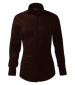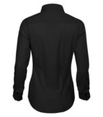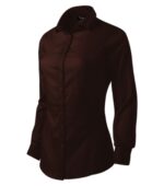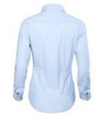 zúžený strih s bočnými švami, dvojté sedlo na zadnom diele, pásové a prsné záševky, dvojdielny košeľový golier, predné kraje začistené légou, dlhé rukávy so šikmou manžetou na 2 gombíčky, perleťové gombíčky vo farbe materiálu (1 náhradný naviac), tvarovaný dolný okraj