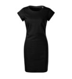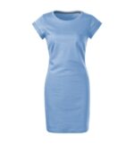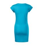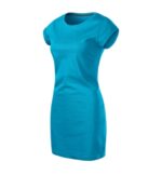 bez etikety – pripravené na rebranding, voľný ľahko tvarovaný strih s bočnými švami, dĺžka nad kolená, hrubší guľatý výstrih, úzky lem priekrčníka z povrchového materiálu s 5 % elastanu, neutrálny veľkostný štítok v bočnej časti priekrčníka, vnútorná časť priekrčníka začistená páskou vo farbe 36, spevňujúca páska od ramena k ramenu, vyhrnuté rukávy prichytené v 4 bodoch šitím