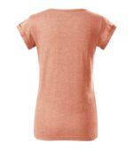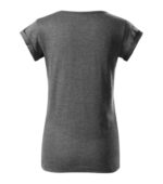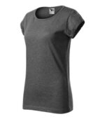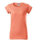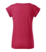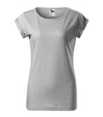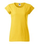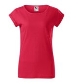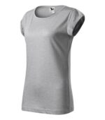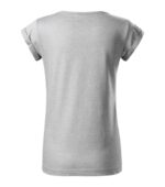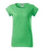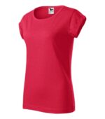 voľný strih s bočnými švami, priekrčník lemovaný povrchovým materiálom, spevnenie ramenných švov páskou, vyhrnuté rukávy prichytené v 4 bodoch šitím, materiál vhodný pre sublimačnú potlač (svetlé farby)