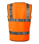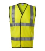 odev s vysokou viditeľnosťou, zapínanie na suché zipsy, lemovanie pásikom vo farbe 01, retroreflexné pruhy, certifikácia podľa noriem EN ISO 20471 (trieda 2) a EN ISO 13688, veľkosť M vhodná pre VP 160 – 176 cm, OH 84 – 108 cm, veľkosť 2XL vhodná pre VP 184 – 192 cm, OH 110 – 140 cm