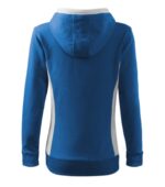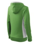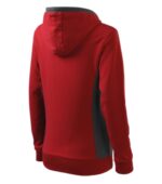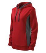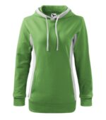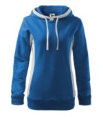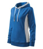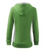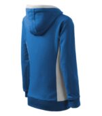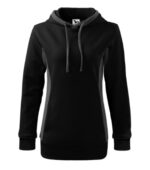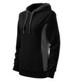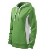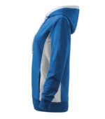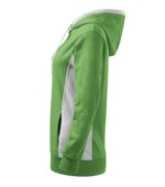 strečový rýchloschnúci materiál, strih tvarovaný bočnými dielmi, kapucňa s podšívkou, na stiahnutie šnúrkou, lištové vrecká v štýle klokanky, dolný lem, manžety a priekrčník z rebrového úpletu 1:1 s 5 % elastanu, kontrastné prvky (okrem farieb BB a WW), vnútorná strana nepočesaná, produkt sa už do budúcnosti nebude naskladňovať