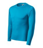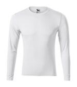 hladký rýchloschnúci materiál, strih s bočnými švami, lem priekrčníka z povrchového materiálu, spevňujúca páska od ramena k ramenu, dlhé rukávy, ideálne pre šport a pohybové aktivity, materiál vhodný pre sublimačnú potlač (svetlé farby)