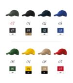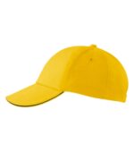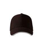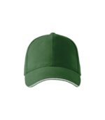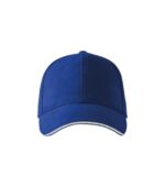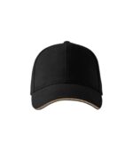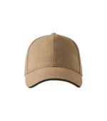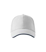 šesťpanelový strih, vystužené 2 predné panely, prešívaný, zľahka prehnutý šilt s kontrastným pásikom, obšité vetracie otvory, potiaca páska, veľkosť nastaviteľná mosadzným cvokom