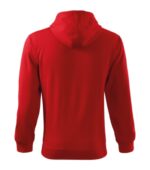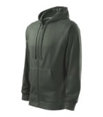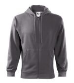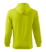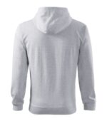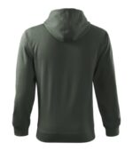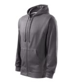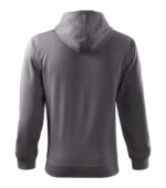 rovný strih s bočnými švami, celozapínací kostený zips, kapucňa s podšívkou, na stiahnutie šnúrkou, vnútorná časť priekrčníka začistená kontrastnou páskou, nakladané vrecká v štýle klokanky, dolný lem a manžety rukávov z rebrového úpletu 2:2 s 5 % elastanu, vnútorná strana počesaná