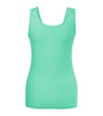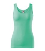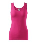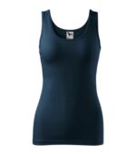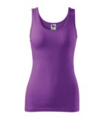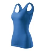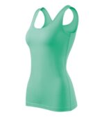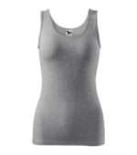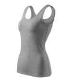 strečový materiál udržujúci stálosť tvaru, priliehavý strih s bočnými švami, hrubší guľatý výstrih, priekrčník a prieramky lemované povrchovým materiálom, širšie ramienka