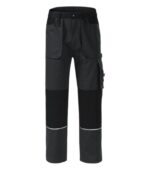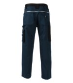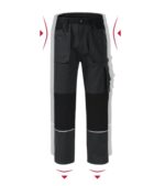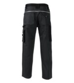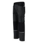pružná guma v bočnej časti pásového goliera, 7 multifunkčných vreciek, zdvojený materiál v oblasti kolien a sedu, plastové “D” pútko a karabína na kľúče a ID karty, pútko na kladivo, dvojté prešitie pre vyššiu odolnosť, retroreflexné prvky