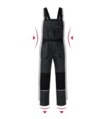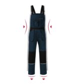 pružná guma v zadnej časti pásového goliera, zapínanie na gombíky v bočnej časti, traky s elastickým dielom nastaviteľné prackou, 8 multifunkčných vreciek, zdvojený materiál v oblasti kolien a sedu, plastové “D” pútko a karabína na kľúče a ID karty, pútko na kladivo, dvojté prešitie pre vyššiu odolnosť, retroreflexné prvky