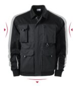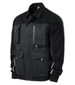 celozapínací kostený zips s chlopňou, záhyby na zadnom diele, 8 multifunkčných vreciek, mechové vrecká s chlopňou a lištové vrecká na zips, manžety rukávov z rebrového úpletu s 3 % elastanu, dolný okraj stiahnutý pruženkou v bočnej časti, kovové “D” pútko na kľúče a ID karty, dvojté prešitie pre vyššiu odolnosť, retroreflexné prvky